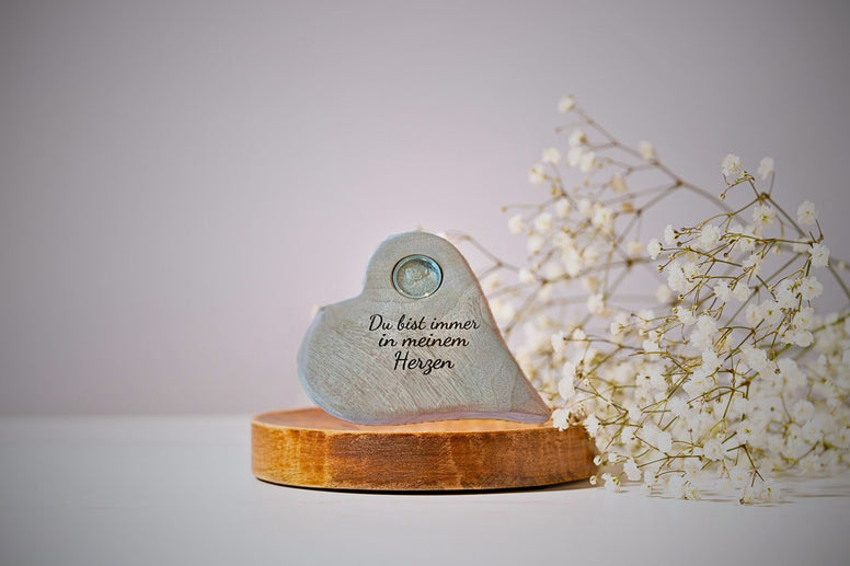 Unsere Erinnerungsstücke sind einzigartig und handgefertigt. Wir können auf Sonderwünsche eingehen und sind flexibel und unabhängig. Viele unserer Erinnerungstücke finden Sie auch bei TreibSand® und können unabhängig von einer Bestattung bestellt werden.
